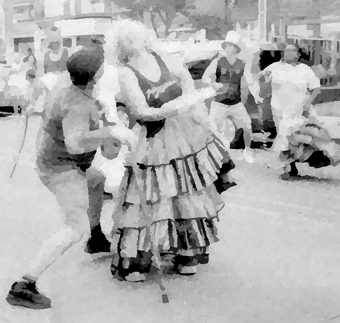 Sometimes, when I hear the drums, I zoom to their street with one of my old cameras and try to capture the action. Too often I botch something; this time it was lack of attention while developing film.